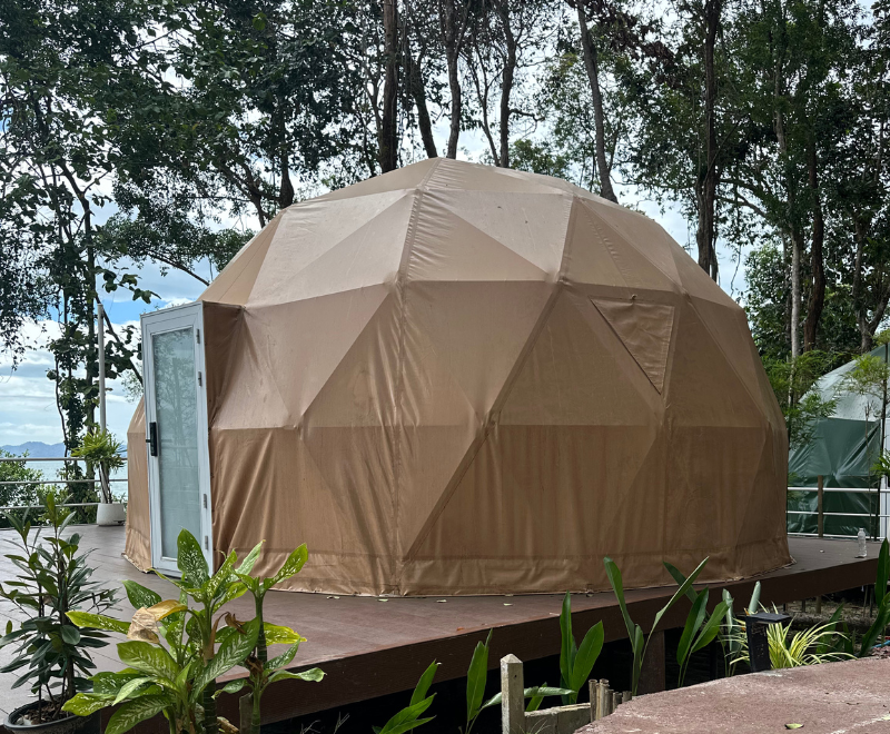 Votre dôme est prêt dès votre arrivée : aucun montage, aucun tracas. Entrez, posez vos valises, puis partez explorer les sentiers tranquilles ou installez-vous avec un livre sous la large fenêtre.