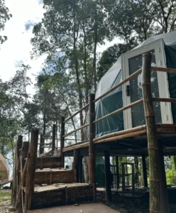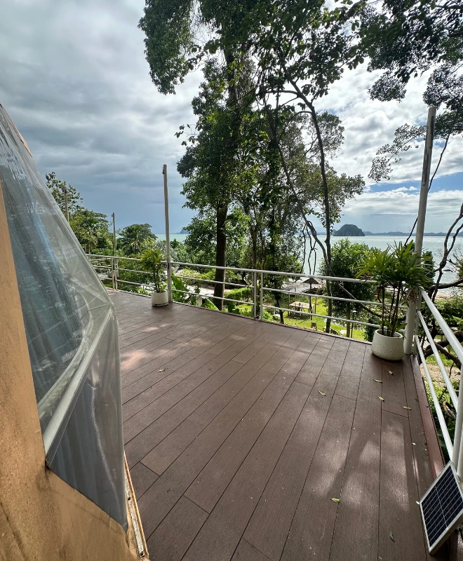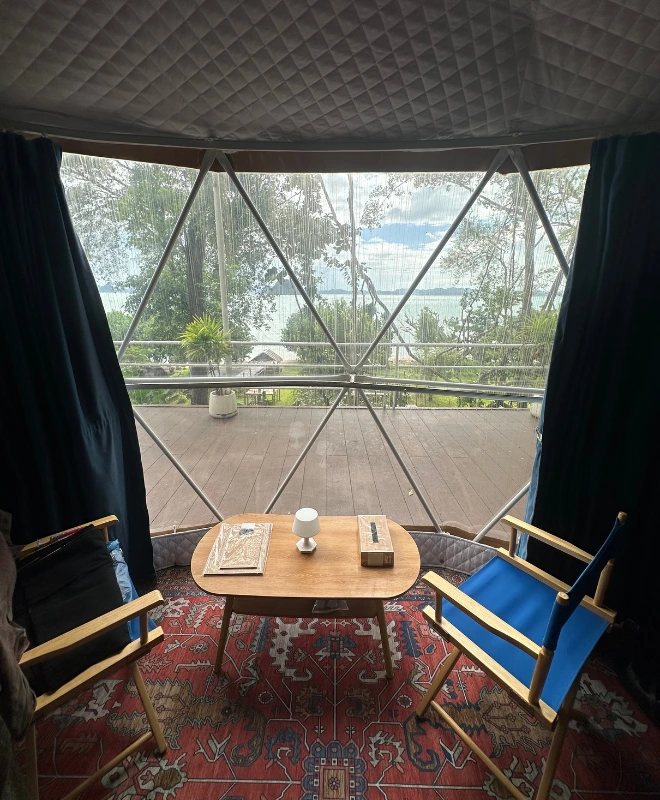 Orientés face à la mer et aux rochers majestueux de la baie de Phang Nga, nos dômes sont équipés de tout le confort moderne : climatisation, literie douillette, salle de bain privée et eau chaude. Leur agencement réfléchi les rend idéaux pour les couples, les amis et les voyageurs seuls. Nous accueillons également les familles, avec une option de tentes adjacentes pour les enfants qui préfèrent ne pas dormir sur un lit d’appoint. Des nuits fraîches, des lits moelleux et un design soigné, voilà ce qui vous attend.